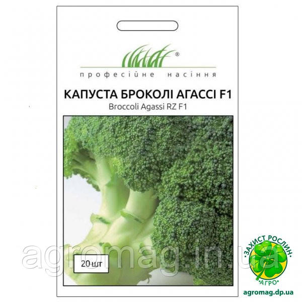 Агассі F1 - високоврожайний ранньостиглий гібрид капусти брокколі. Вегетаційний період – 65-75 днів. Адаптований до всіх ґрунтово-кліматичних зон України. Суцвіття відрізняється привабливою формою і має стресостійкість до негативних факторів зовнішнього середовища. Для отримання конвеєрних урожаїв рекомендується висаджувати розсаду в декілька етапів (через 7-10 днів).